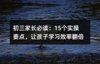 初三年級家長如何有效提高孩子學習效率的十五個實操要點。其中包括強調學習態度和過程、重視閱讀積累、關注時事與生活、選擇適合的補習班以及正確處理青春期問題等。文章旨在幫助家長更好地引導孩子在初三年級取得更好的成績,并培養孩子良好的學習態度與習慣。