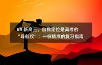 ## 新高三,自我定位是高考的“導(dǎo)航儀”:一份精準(zhǔn)的復(fù)習(xí)指南