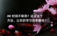 ## 時間不夠用?試試這個方法,讓你的學(xué)習(xí)效率翻倍!