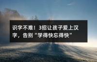 識字不難!3招讓孩子愛上漢字,告別“學得快忘得快”
