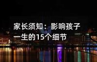 - 家長須知:影響孩子一生的15個細節- 父母在教育孩子過程中需要注意的15個細節問題。文章指出,孩子的習慣和行為是父母無意間的培養出來的,強調父母在孩子教育中的重要作用。文章列舉了節儉、健康、現代、友愛、上進、危機感和思考等七個方面,認為這些方面的培養對影響孩子一生具有重要意義。因此,父母 - 2024-08-30
