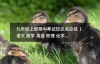 九年級上冊期中考試知識點總結(語文 數學 英語 物理 化學 歷史)