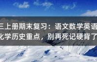 - 初三上冊期末復習:語文數學英語物理化學歷史重點,別再死記硬背了- 初三上冊期末復習的語文、數學和英語科目的重點。語文強調理解文言文邏輯而非死記硬背翻譯;數學關注圖像結構關系而非純計算;英語則強調語境中的被動語態使用習慣。同時,也提到了其他科目如物理、化學、歷史的復習重點,提倡使用正確的學習方法提高效率。 - 2025-10-22
