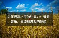 小孩注意力不集中可以通過運動鍛煉、音樂鍛煉、閱讀鍛煉和游戲鍛煉來提高。家長應該適當引導小孩進行這些活動,讓小孩在快樂中成長。家長們也應該注重小孩的飲食和睡眠,這些也是影響小孩注意力的重要因素。