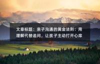 文章標題:親子溝通的黃金法則:用理解代替追問,讓孩子主動打開心扉