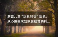 兒童與玩具對話的現象背后的深層原因、潛在影響和家長誤區。從心理需求角度看,這種現象源于社交真空、語言發展的自然需求、安全感缺失以及認知發展階段的特點。家長應理解孩子行為背后的邏輯,并警惕社交技能發展延遲和自我中心性格形成的長期風險。