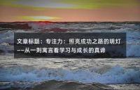 專注力:照亮成功之路的明燈——從一則寓言看學習與成長的真諦