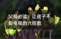 如何讓孩子不黏在電視前的六招方法。包括事先訂好看電視規則、用好的DVD取代不好的電視節目、把電視和遙控器藏起來、不在孩子房間放電視、不把電視當保姆和家長要以身作則等。這些方法旨在減少孩子看電視的時間,保護孩子的眼睛和身心健康。